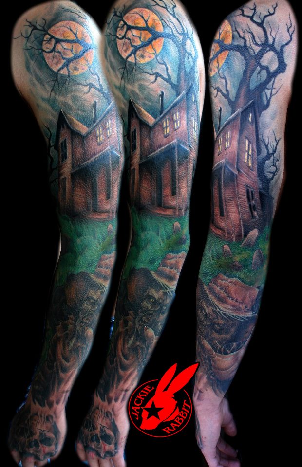 Haunted House Sleeve Tattoo By Jackie Rabbit By Jackierabbit12 On Deviantart